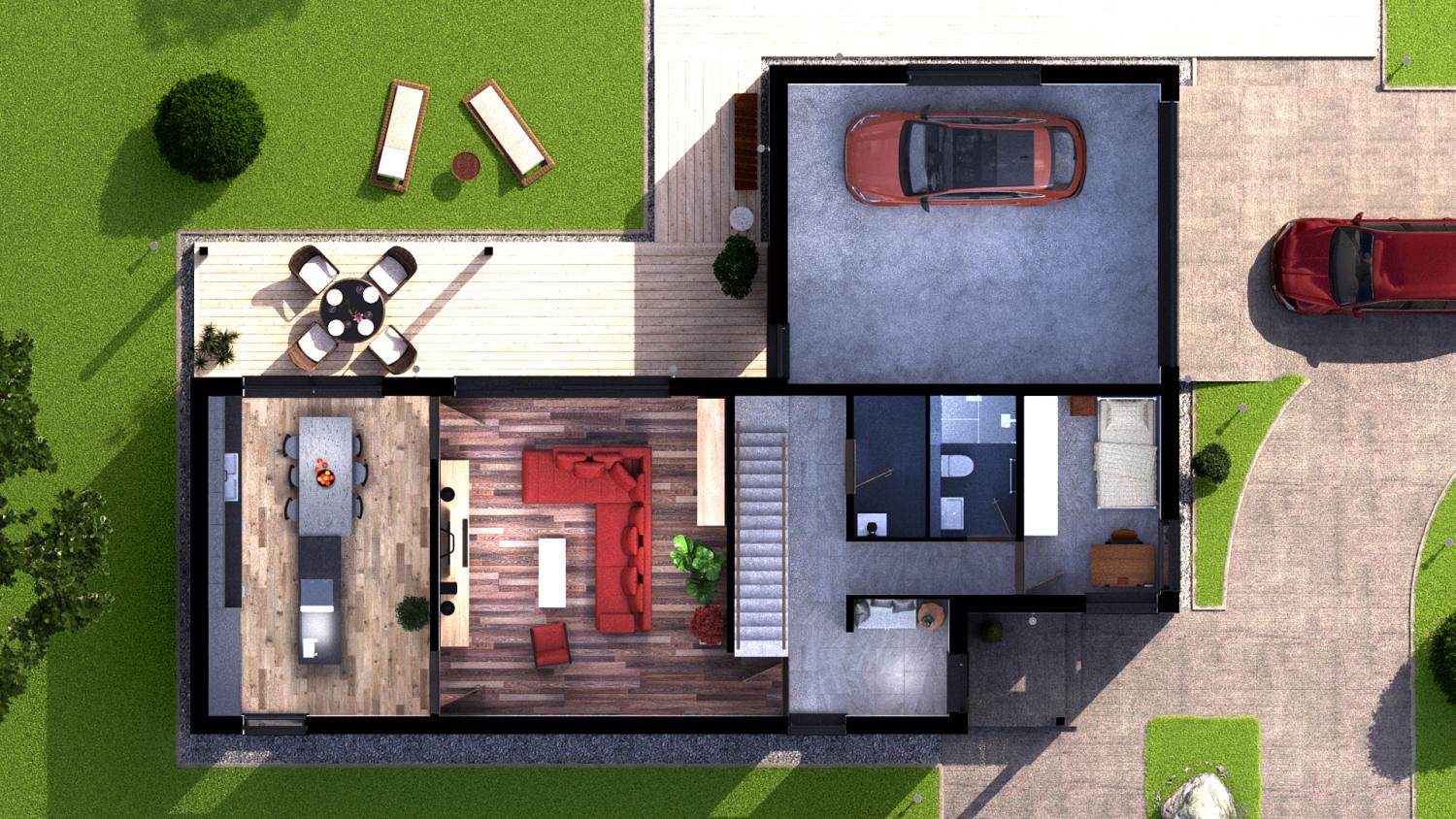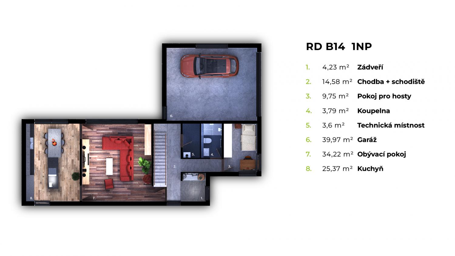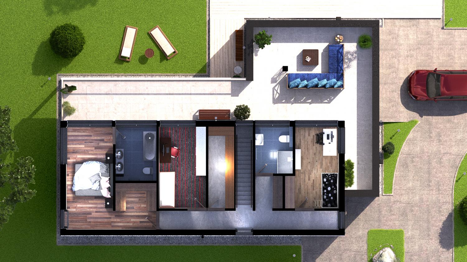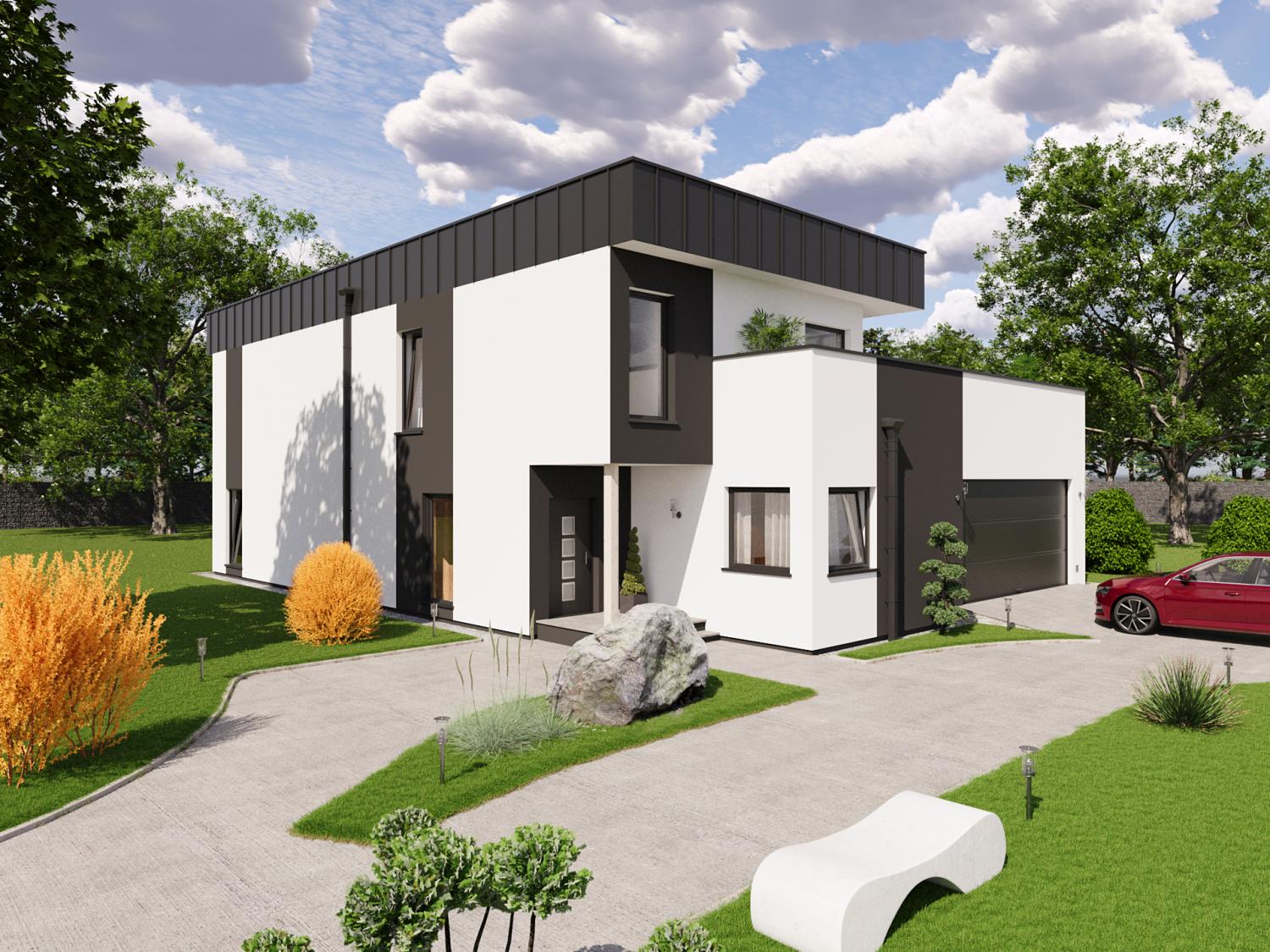 Moderní a nadstandardně řešený patrový dům se zastřešenou terasou, balkonem a prostornou garáží pro 2 auta. To je Kaštan s dispozicí 5+kk s nadstandardním prostorovým uspořádáním.